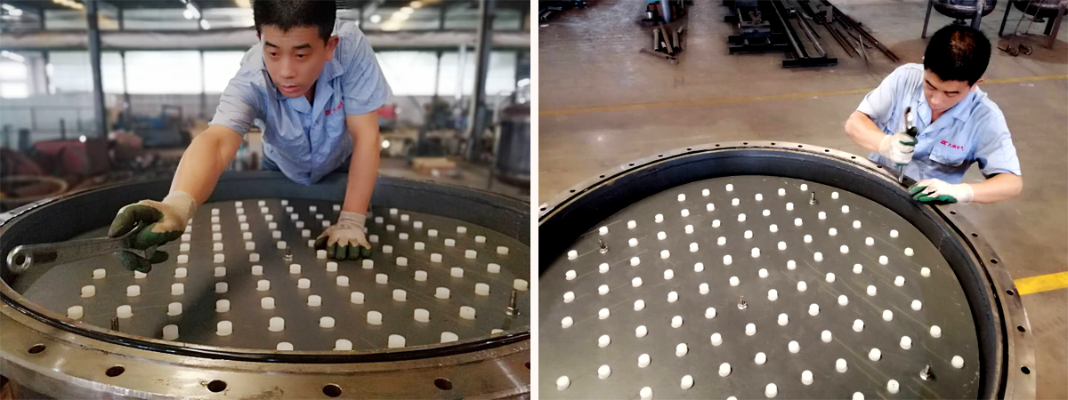 在此之前,直徑1000mm以上的大型罐體使用的法蘭,普遍采用膠墊密封,對安裝操作要求較高,一旦安裝不到位,罐體易出現滴漏。為了解決這個問題,任總帶領機組加工車間深入探討,研究學習各類密封工藝,突破創新,將膠墊密封改為膠圈密封。