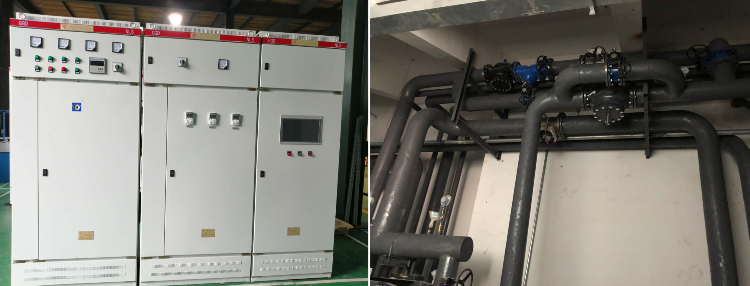 該項目是我公司2020年6月9日和山東東海房地產開發集團有限公司齊河清河園分公司簽訂的“山師東海實驗學校換熱站設備供貨安裝項目”。合同簽訂后,由于施工現場一直不具備安裝條件,導致我公司設備直到2020年9月1日才能進入現場安裝(此時泵房部分土建尚未完工),根據工期要求,安裝人員每天加班加點,披星戴月,克服各種困難,于9月23日,提前于用戶要求的交付日期安裝完畢。目前只需通水、通電及熱源,就可以調試運行設備。為保證這個換熱站按時供暖,10月23日,事業部又派出工程設計電工組前往換熱站做后準備工作。